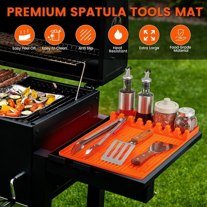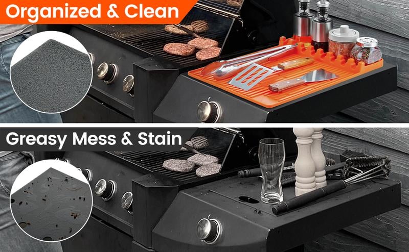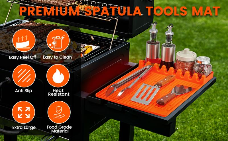 ·Upgraded Silicone Spatula Mat: Sized at 16x11.5", this mat is tailored for your Blackstone griddle, securely holding your BBQ tools and seasonings without sliding, while keeping your side table clean from grease and oil